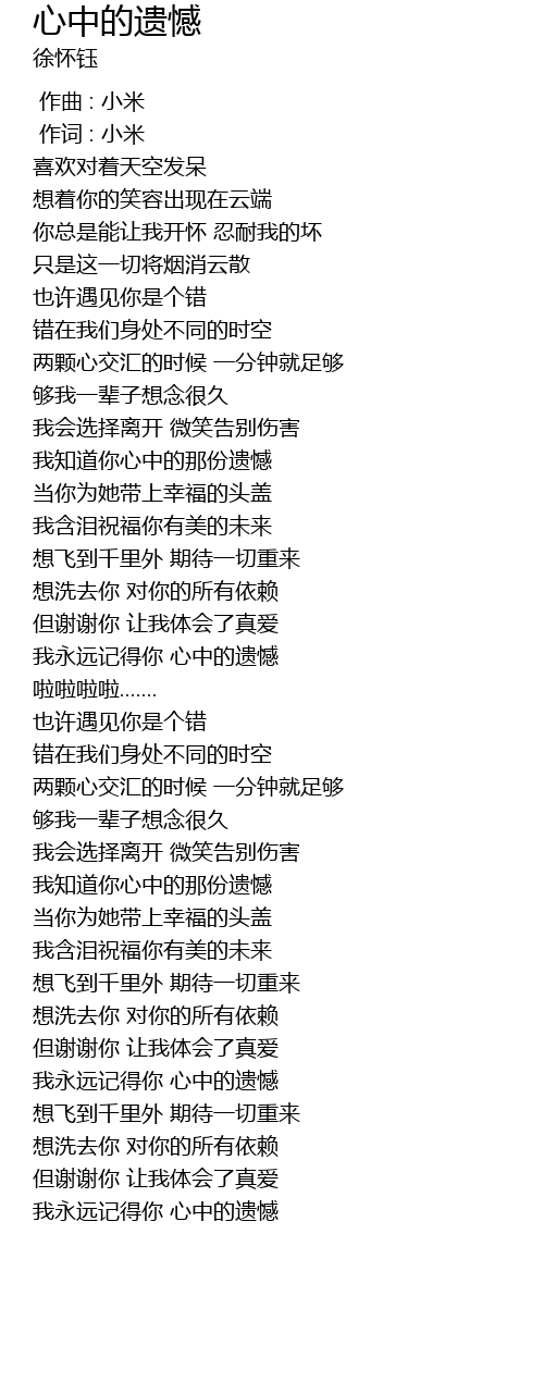 | [04:16.920] | 我永远记得你 心中的遗憾 |