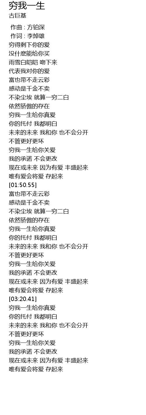 | [03:26.31] | qiong wo yi sheng gei ni zhen ai |
