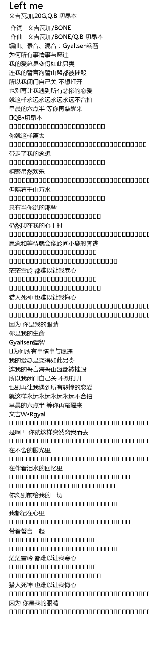 | [00:14.651] | 编曲、录音、混音:Gyaltsen端智 |