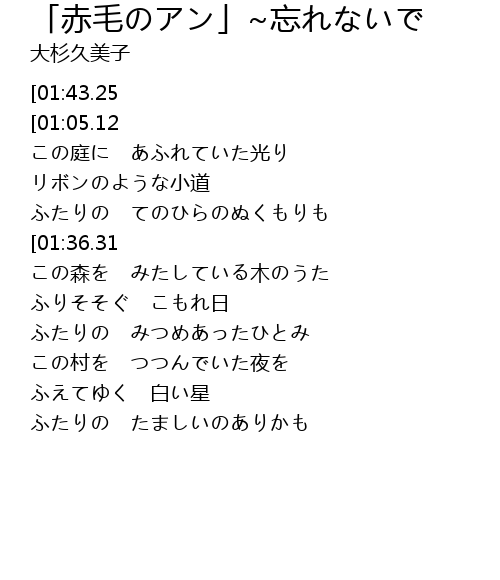 | Song | 「赤毛のアン」~忘れないで |