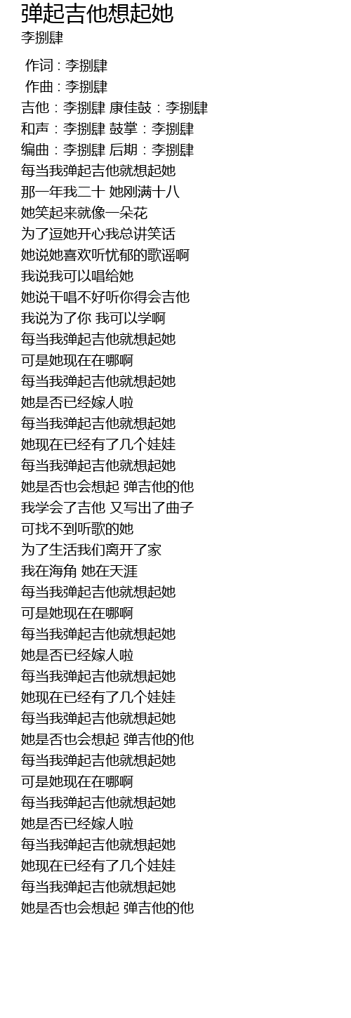 | [03:06.917] | 每当我弹起吉他就想起她 |