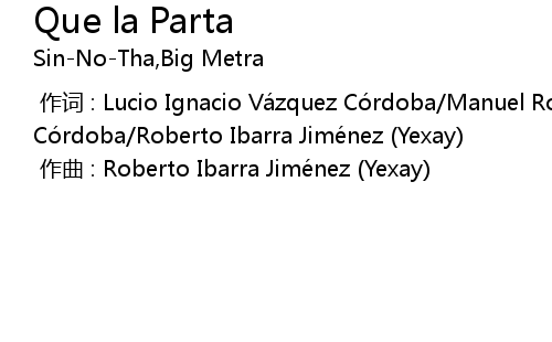 | [00:00.000] | 作词 : Lucio Ignacio Vázquez Córdoba/Manuel Rodrigo Vázquez Córdoba/Roberto Ibarra Jiménez (Yexay) |