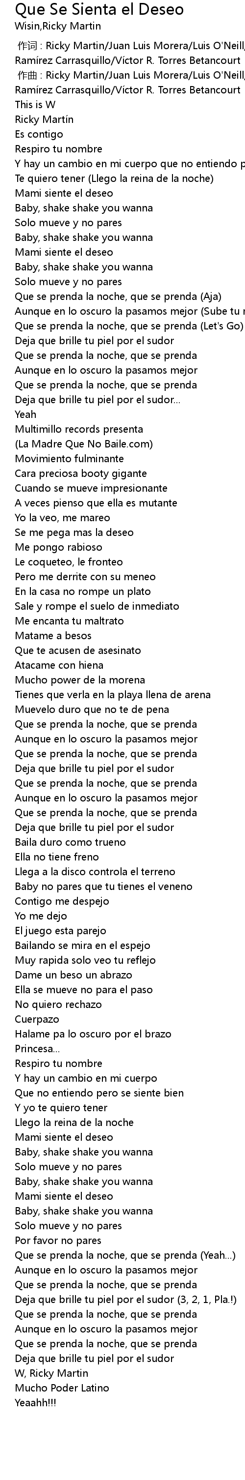 | [00:00.000] | 作词 : Ricky Martin/Juan Luis Morera/Luis O'Neill/Marcos A. Ramírez Carrasquillo/Víctor R. Torres Betancourt |