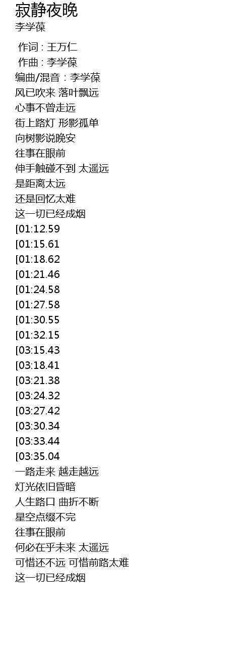 | [04:03.40][03:15.43][01:36.59] | jì jìng yè wǎn xiàng yǐng piān |