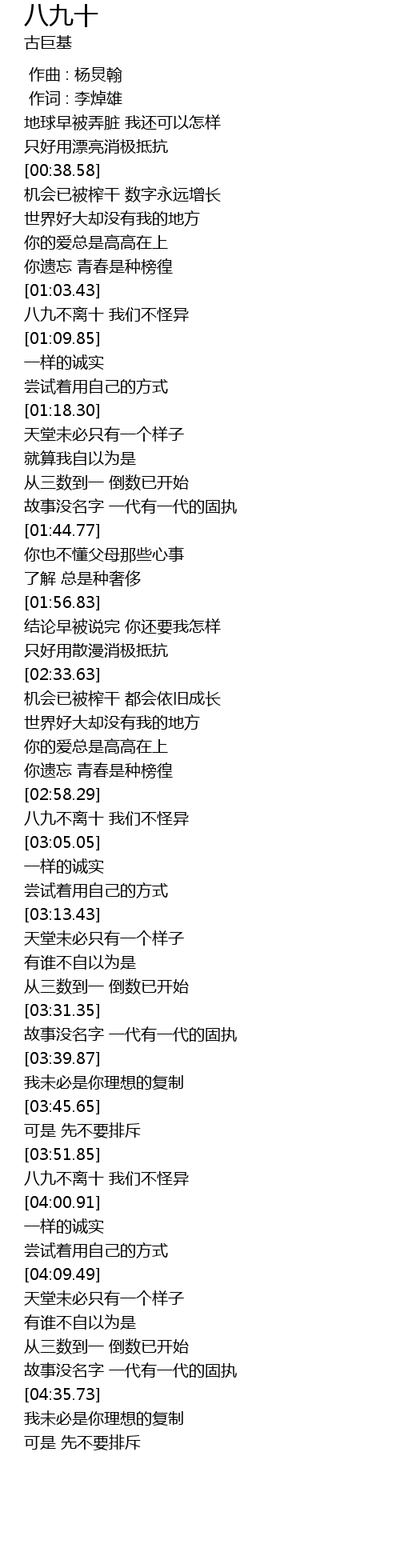 | [02:59.00] | bā jiǔ bù lí shí wǒ men bù guài yì |