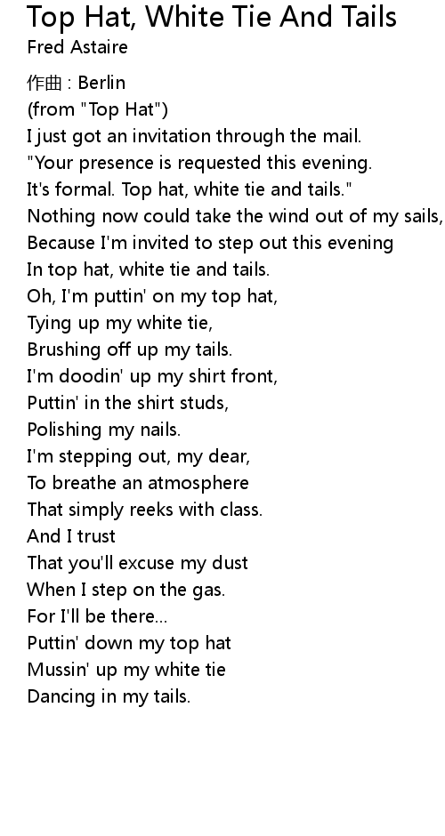 | Song | Top Hat, White Tie And Tails |