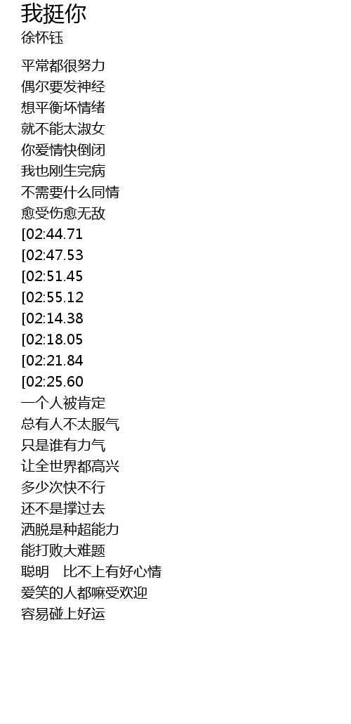 | [03:02.48][02:18.05][01:19.28] | 还有你挺我我挺你 |
