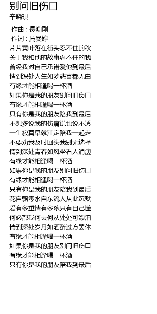 | [01:59.0] | 如果你是我的朋友别问旧伤口 |