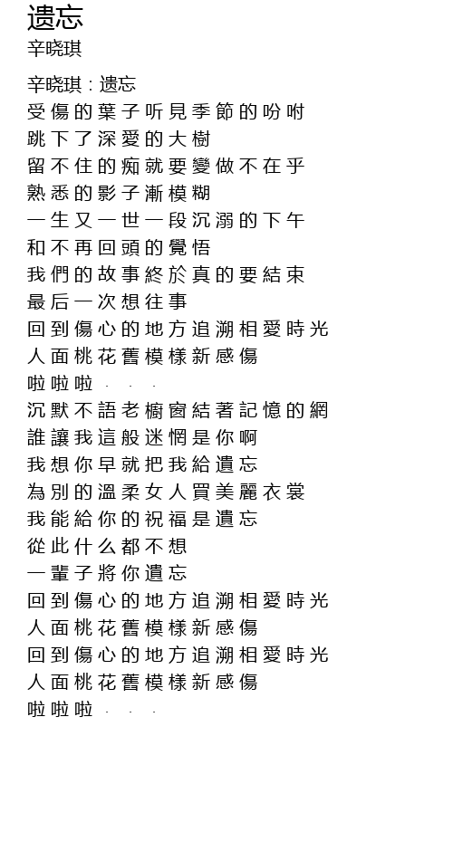 | [0-1:56.700] | 辛晓琪:遗忘 |