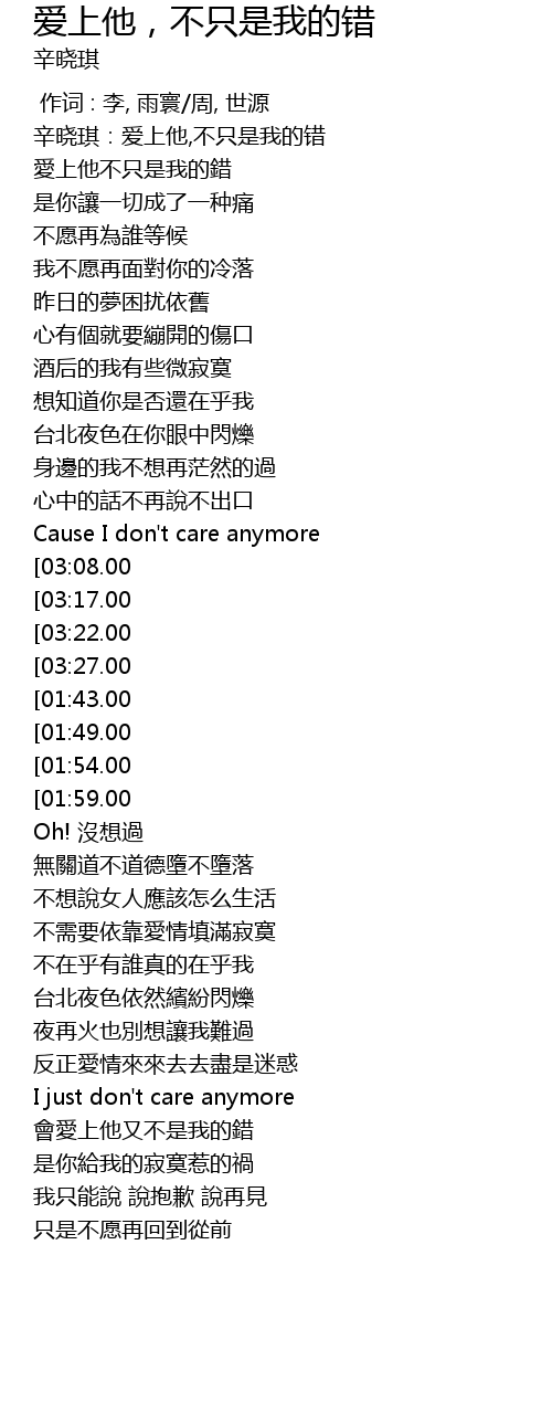 | [00:00.00] | 辛晓琪:爱上他,不只是我的错 |