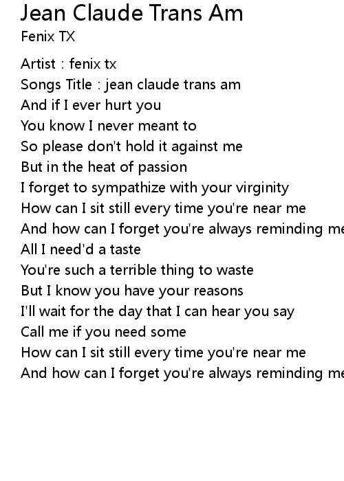 | [00:02.20] | Songs Title: jean claude trans am |