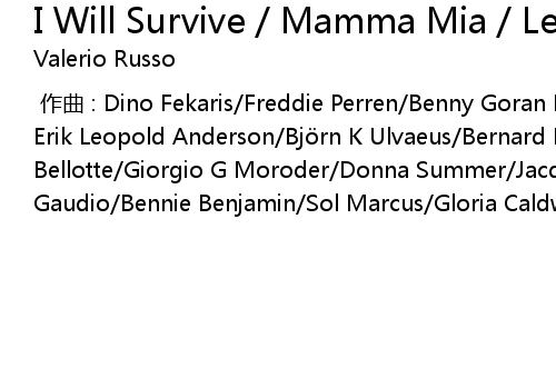 | [00:00.000] | 作曲 : Dino Fekaris/Freddie Perren/Benny Goran Bror Andersson/Stig Erik Leopold Anderson/Björn K Ulvaeus/Bernard Edwards/Nile Gregory Rodgers/Pete Bellotte/Giorgio G Moroder/Donna Summer/Jacques Morali/Bob Crewe/Robert Gaudio/Bennie Benjamin/Sol Marcus/Gloria Caldwell |