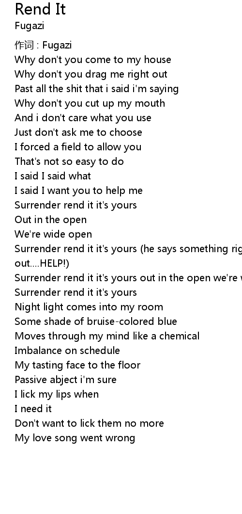 | Surrender rend it it' s yours out in the open we' re wide open | |