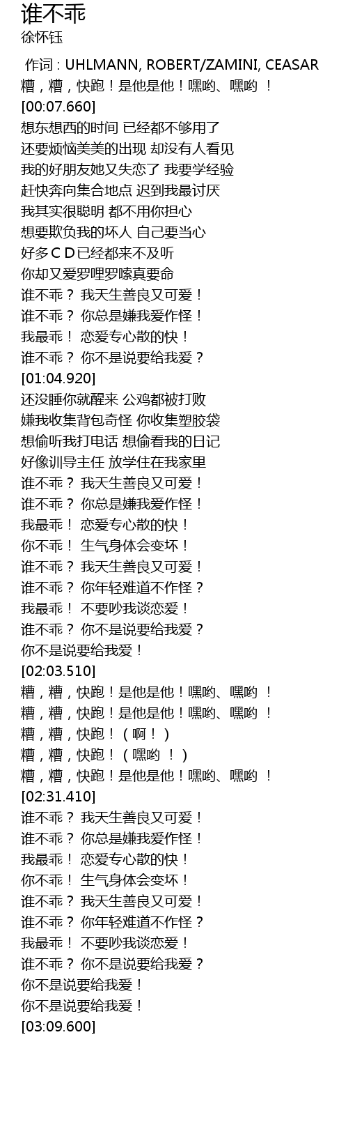 | [02:33.000] | 谁不乖? 我天生善良又可爱! |