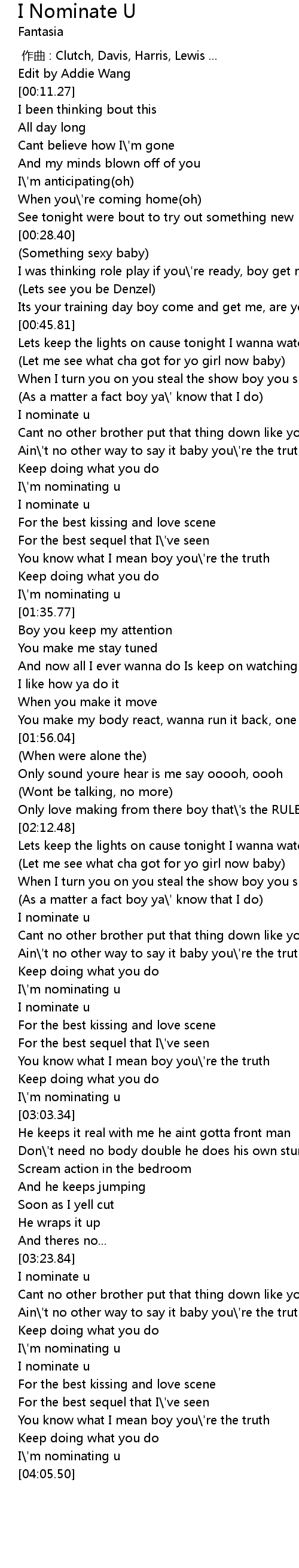 | [00:46.53] | Lets keep the lights on cause tonight I wanna watch you perform |