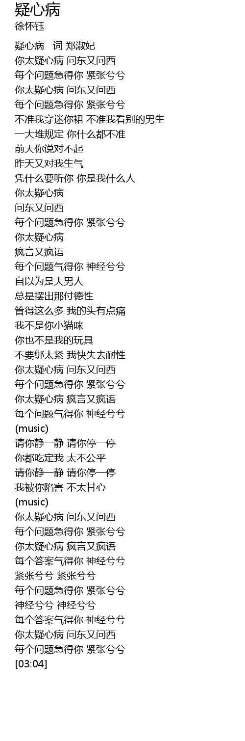 | [00:00] | 你太疑心病 问东又问西 |