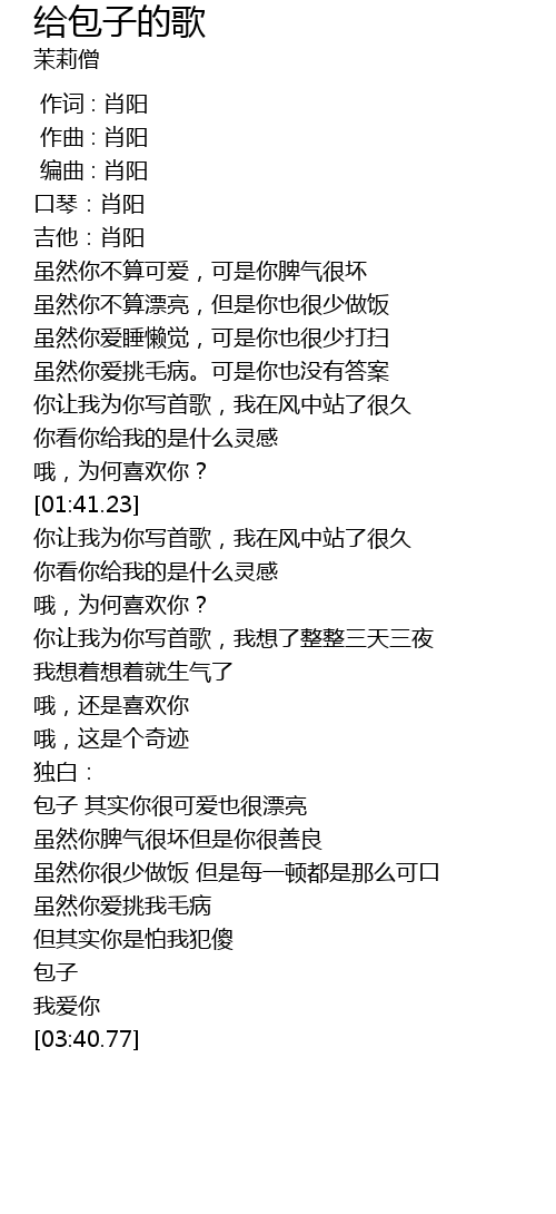 | [03:12.23] | 包子 其实你很可爱也很漂亮 |