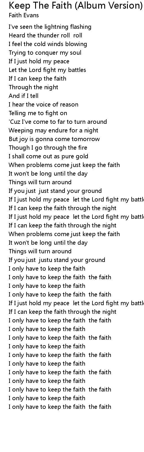 I only have to keep the faith the faith |