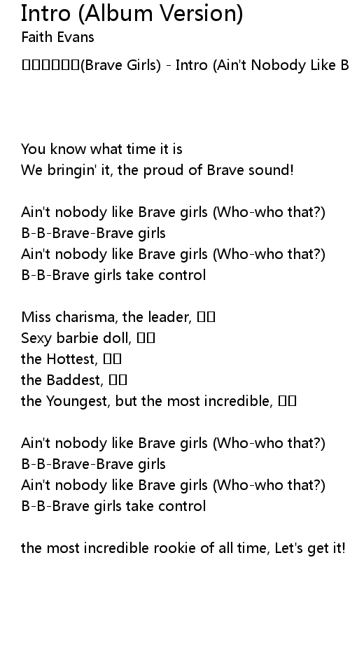 | Brave Girls Intro Ain' t Nobody Like Brave Girls | |