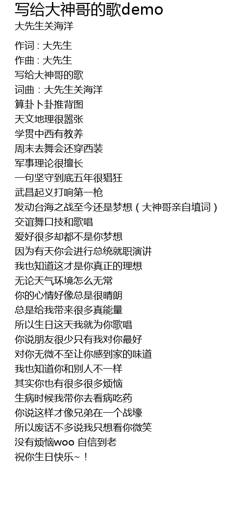 | 发动台海之战至今还是梦想(大神哥亲自填词) | |