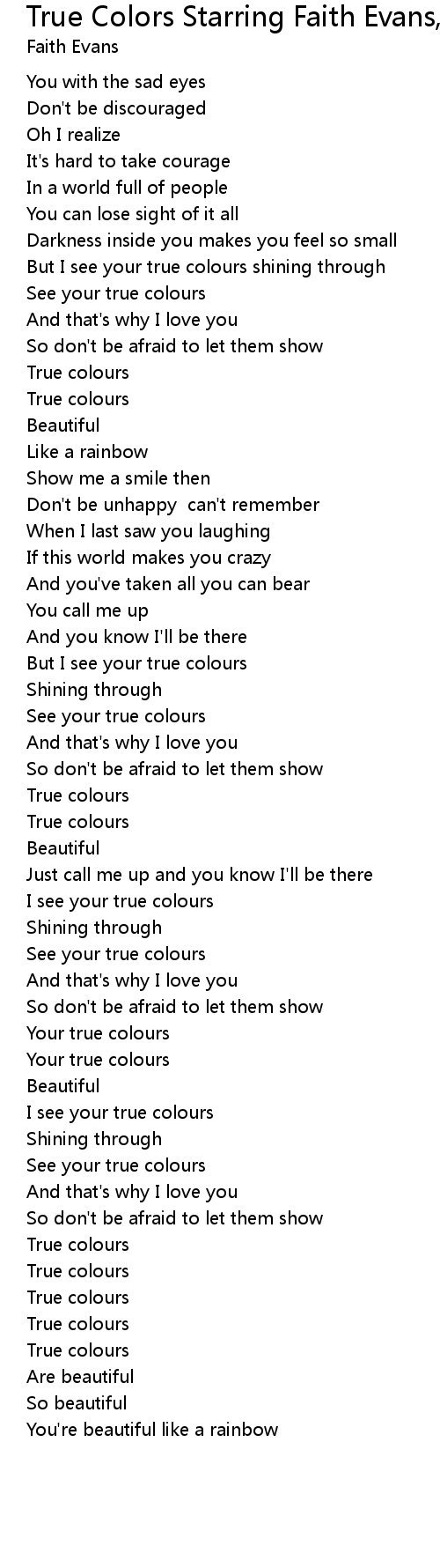 True Colors Starring Faith Evans,Kelly Price & Fantasia Lyrics