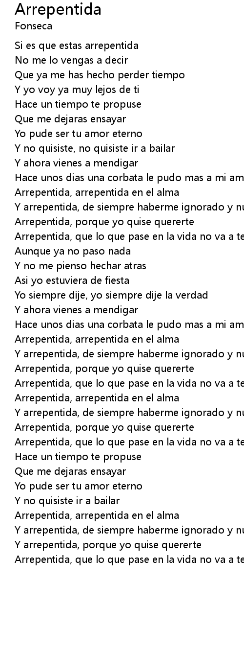 | Y arrepentida, de siempre haberme ignorado y nunca tratar | |