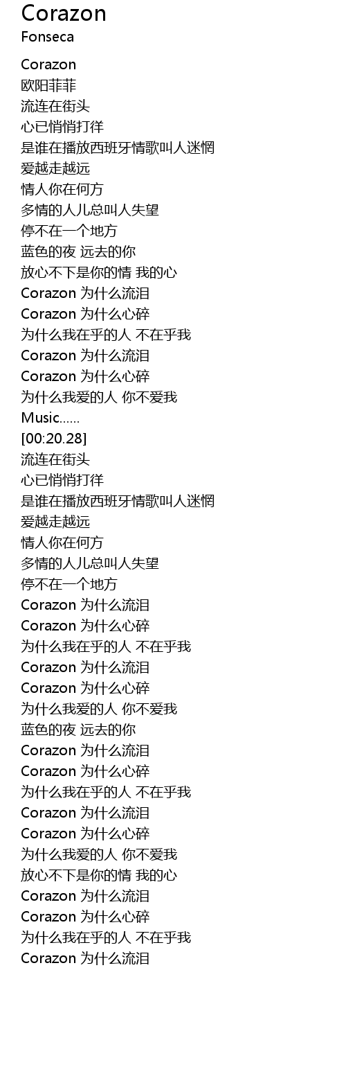 | [01:38.12] | Corazon 为什么心碎 |