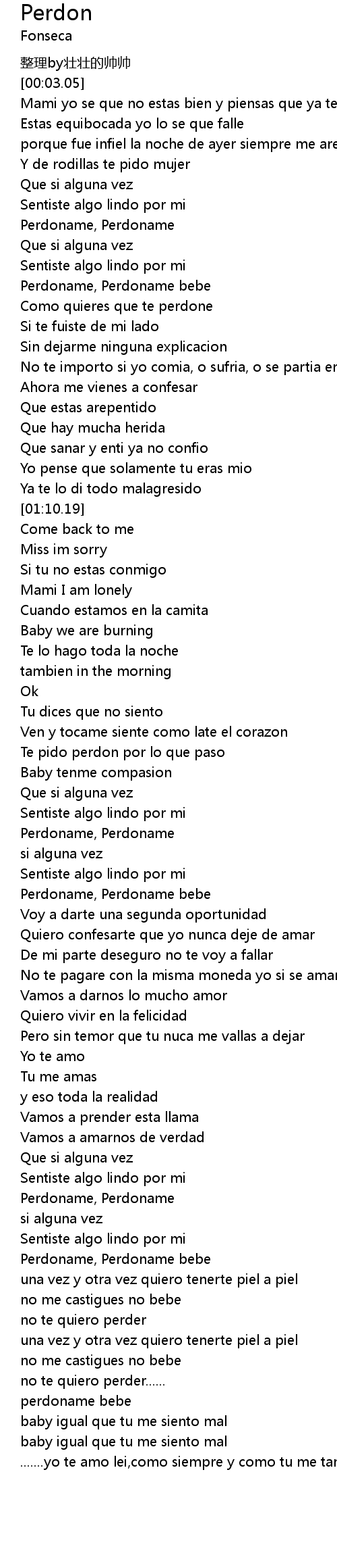 | [01:45.82] | Perdoname, Perdoname bebe |