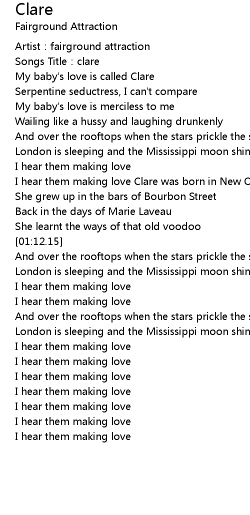 | [00:50.65] | I hear them making love Clare was born in New Orleans |