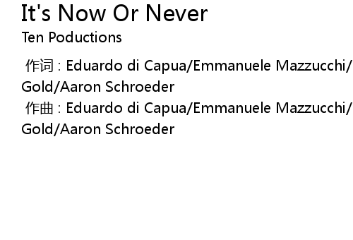 | [00:00.000] | 作曲 : Eduardo di Capua/Emmanuele Mazzucchi/Giovanni Capurro/Wally Gold/Aaron Schroeder |