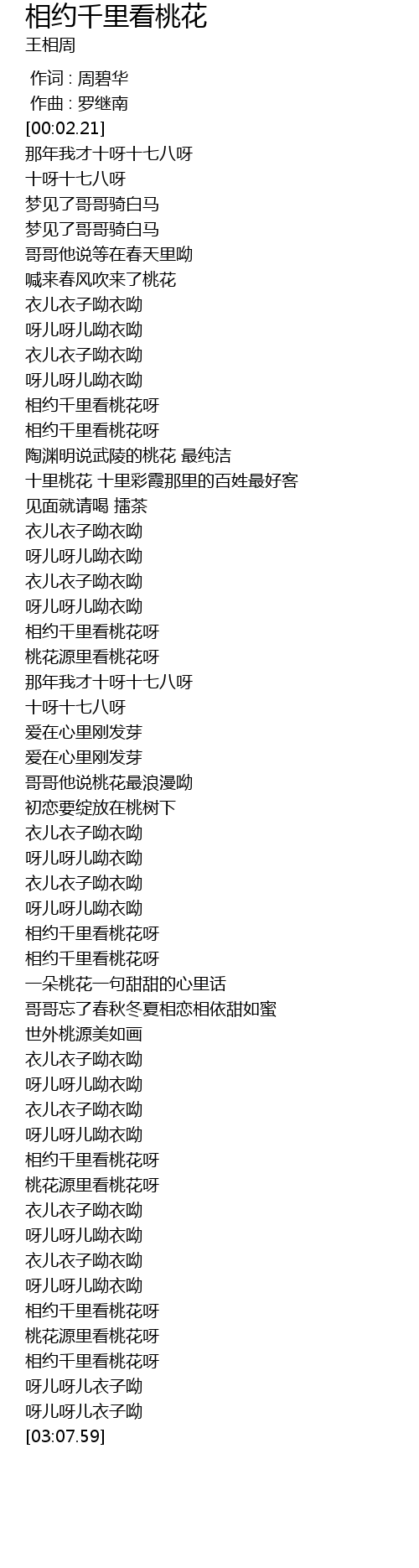 | [02:42.15] | xiāng yuē qiān lǐ kàn táo huā ya |