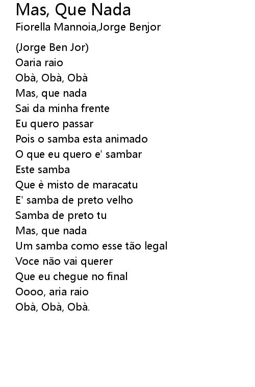| Song | Mas, Que Nada |