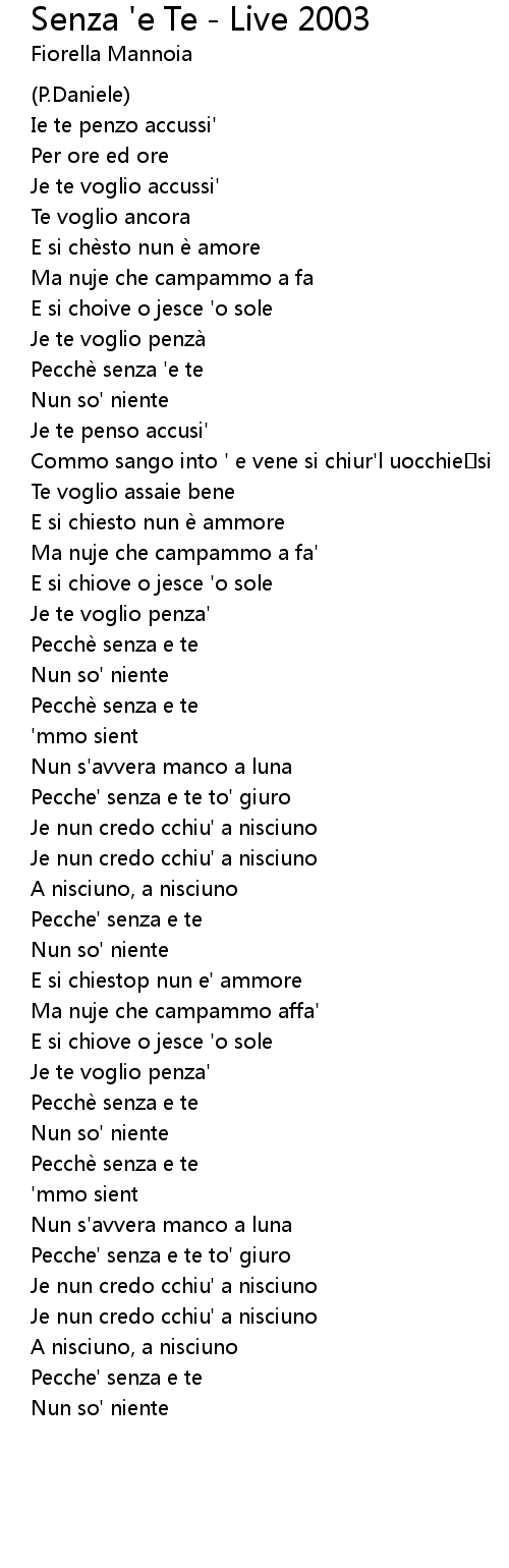| Commo sango into ' e vene si chiur' l uocchie si | |