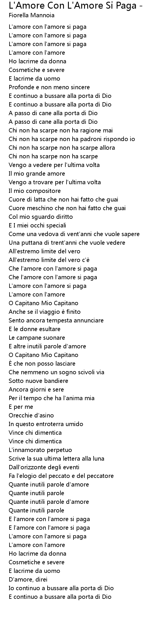 | Song | L'Amore Con L'Amore Si Paga - Live 1998 |