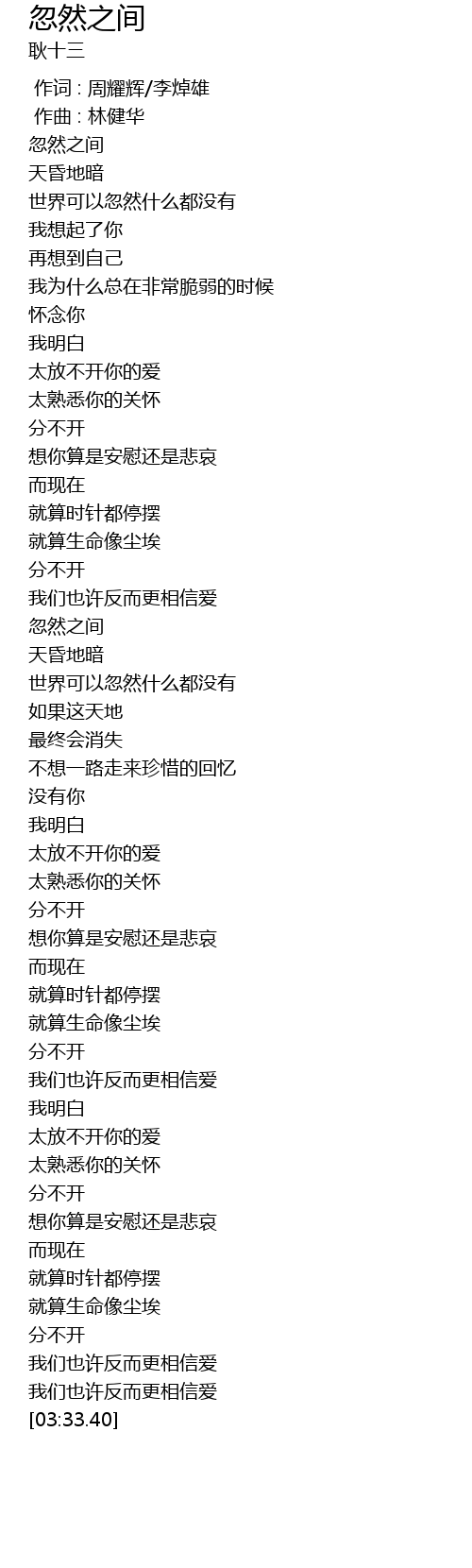 | [00:00.000] | 作词 : 周耀辉/李焯雄 |