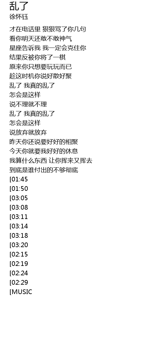 | [03:24][03:05][01:55] | 乱了 我真的乱了 |