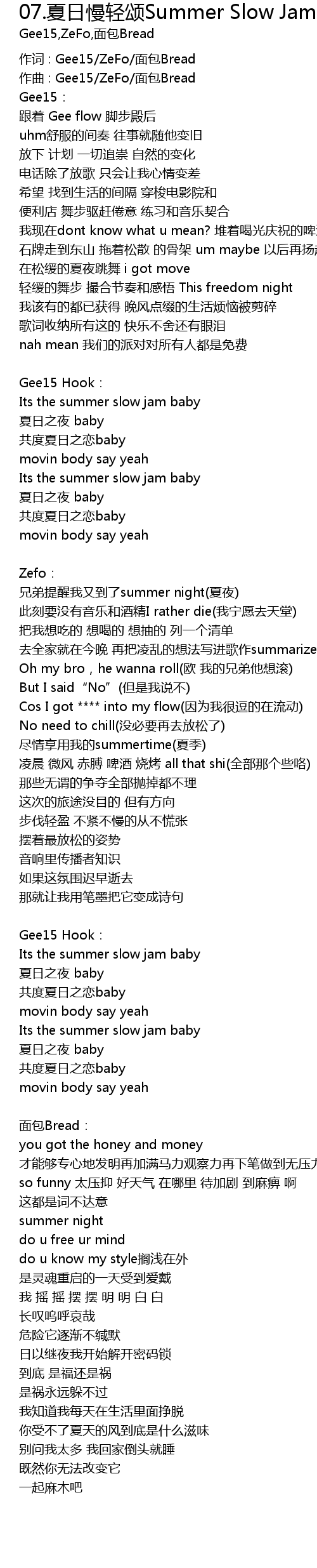 | 作词 : Gee15/ZeFo/面包Bread | |