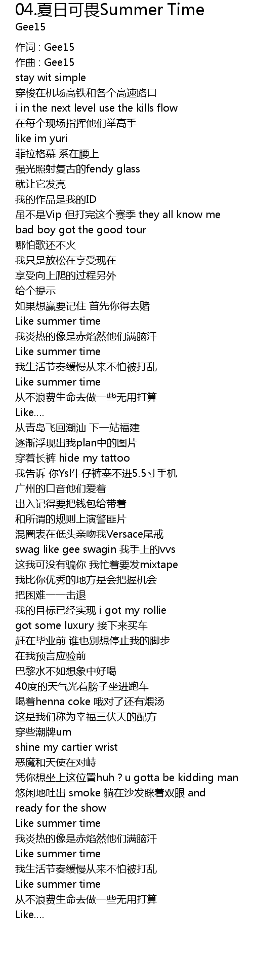 | 作词 : Gee15 | |