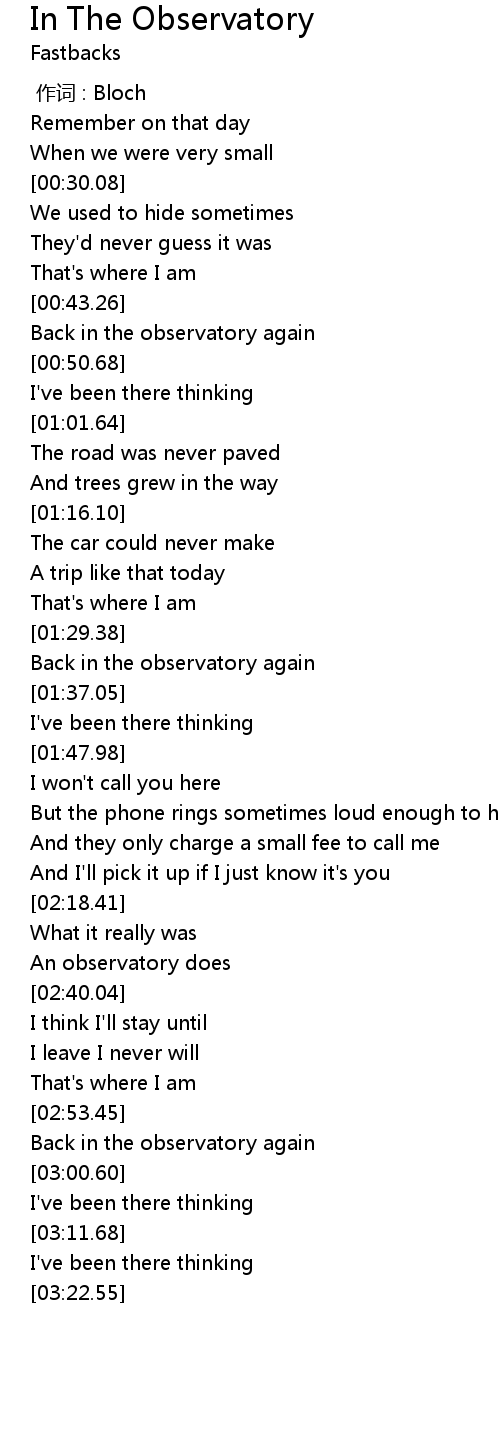 | [02:55.40] | Back in the observatory again |