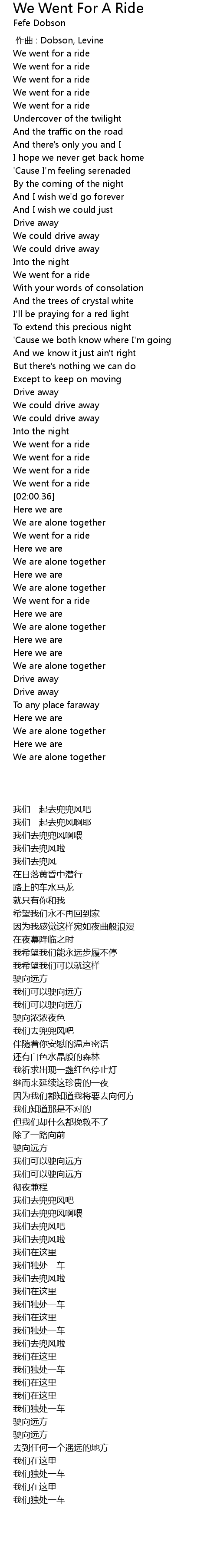 | [01:38.36] | We went for a ride |