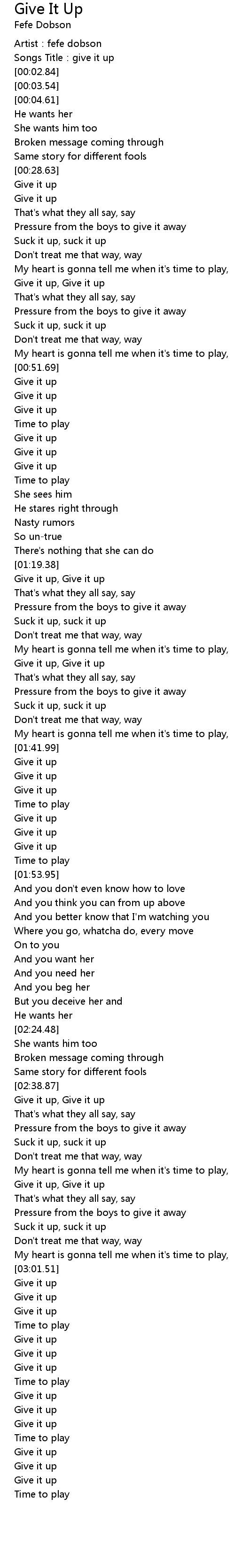 | [03:03.01] | Give it up |