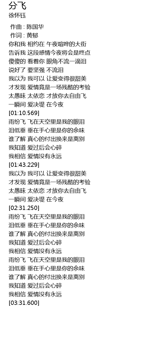 | [00:59.679] | 太愚昧 太依恋 才放你去自由飞 |