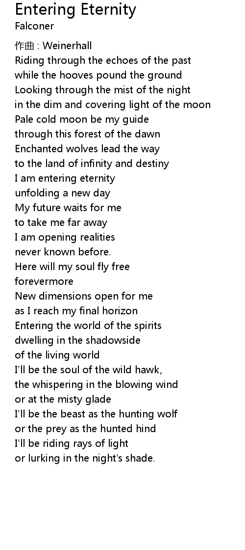 | I am entering eternity | |