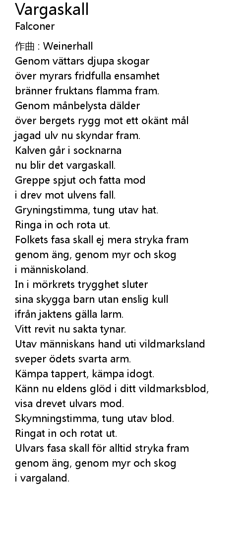 | Song | Vargaskall |