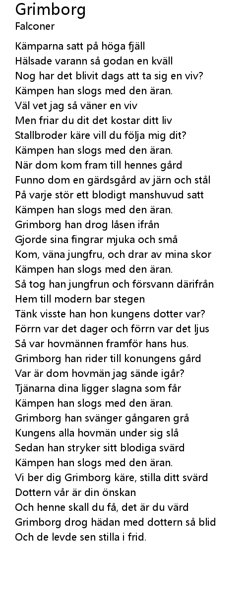 | Vi ber dig Grimborg k re, stilla ditt sv rd | |
