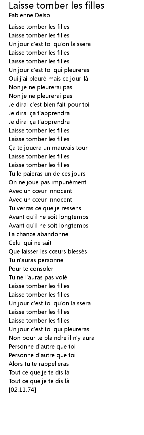 | [01:19.98] | Un jour c' est toi qu' on laissera |