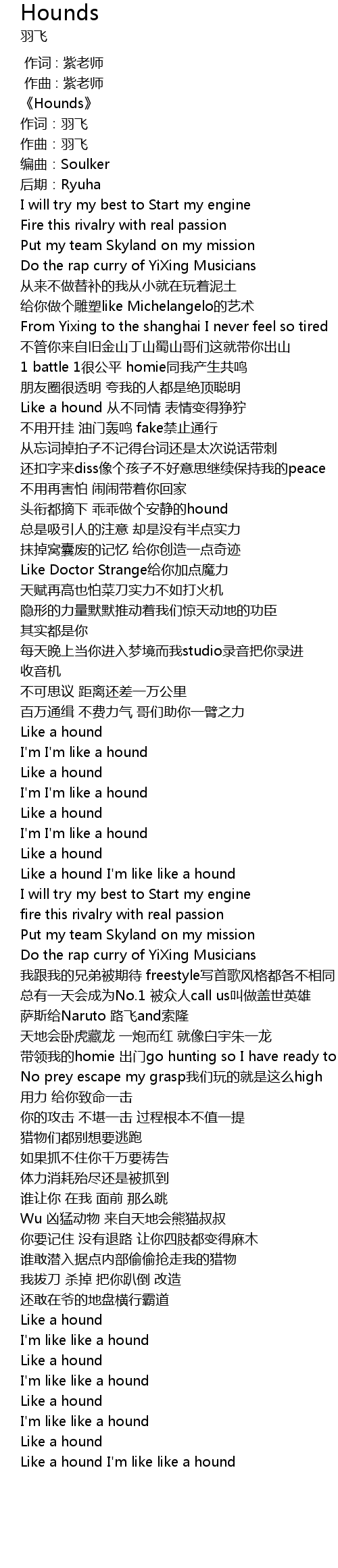 | [00:03.567] | 《Hounds》 |