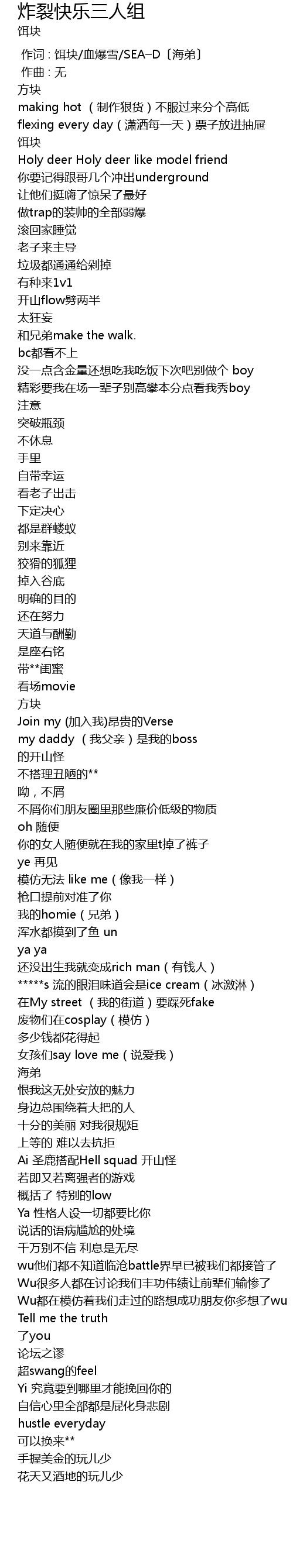 | [00:11.203] | flexing every day(潇洒每一天)票子放进抽屉 |