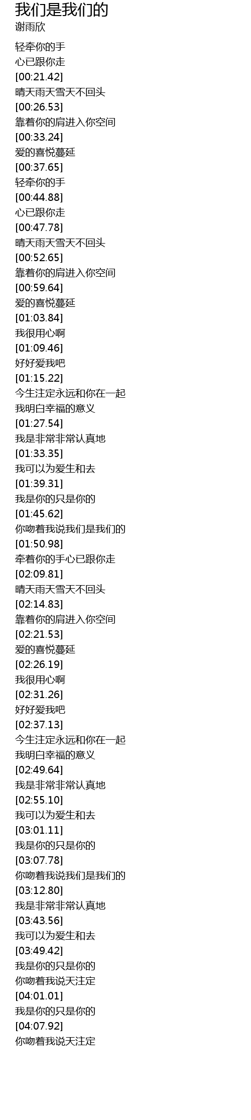 | [03:08.44] | 你吻着我说我们是我们的 |