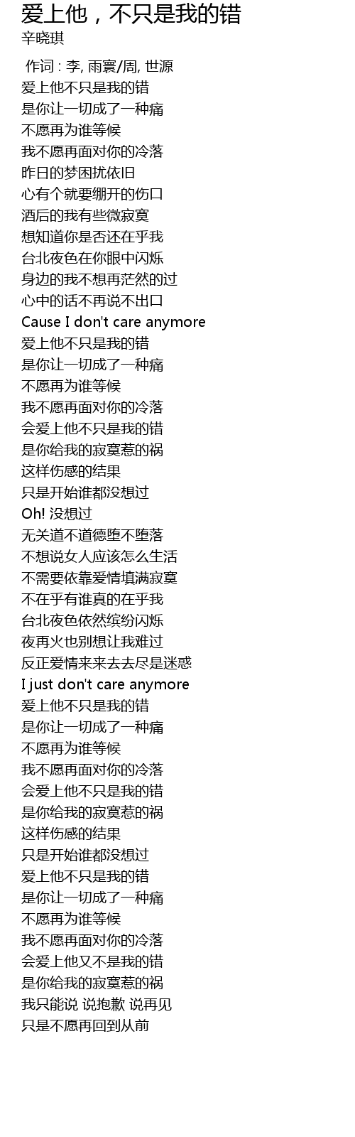 | [01:43.000] | huì ài shàng tā bù zhǐ shì wǒ de cuò |